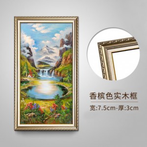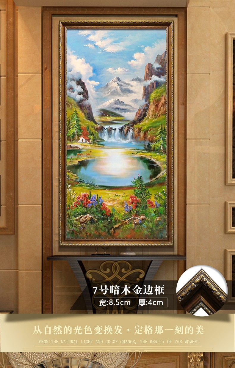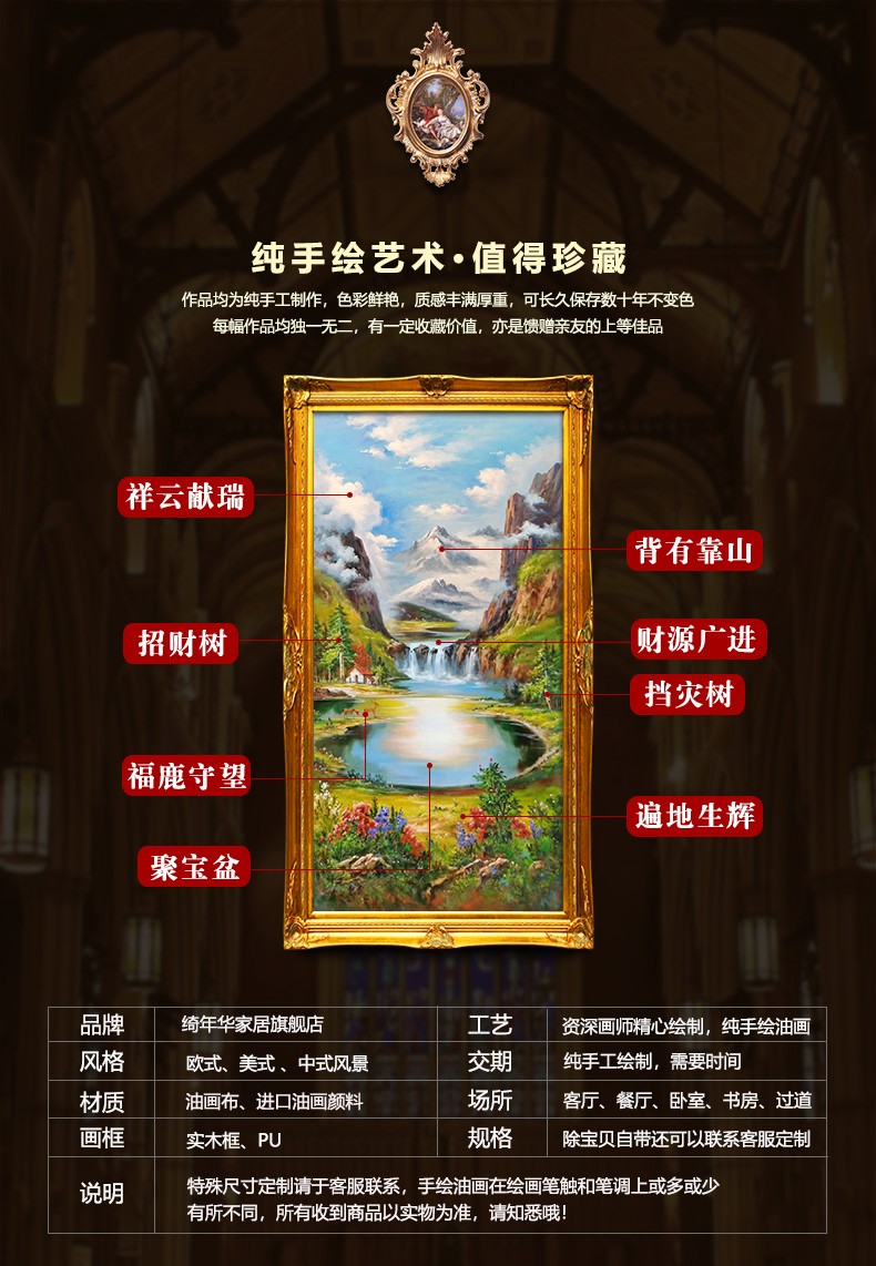 玄关画竖版纯手绘油画装饰画聚宝盆欧式山水风景走廊装饰墙壁挂画