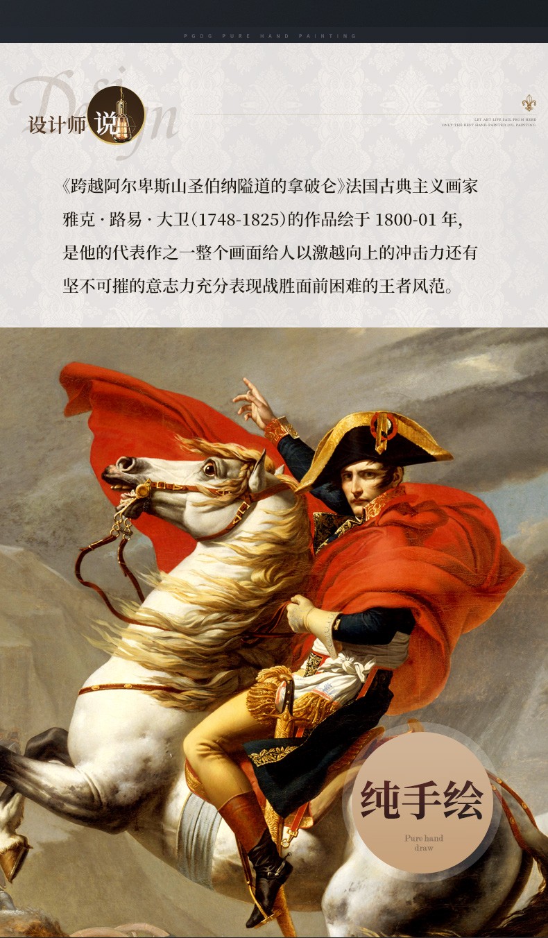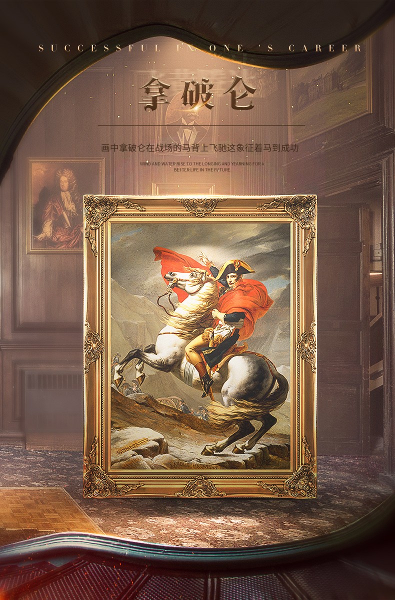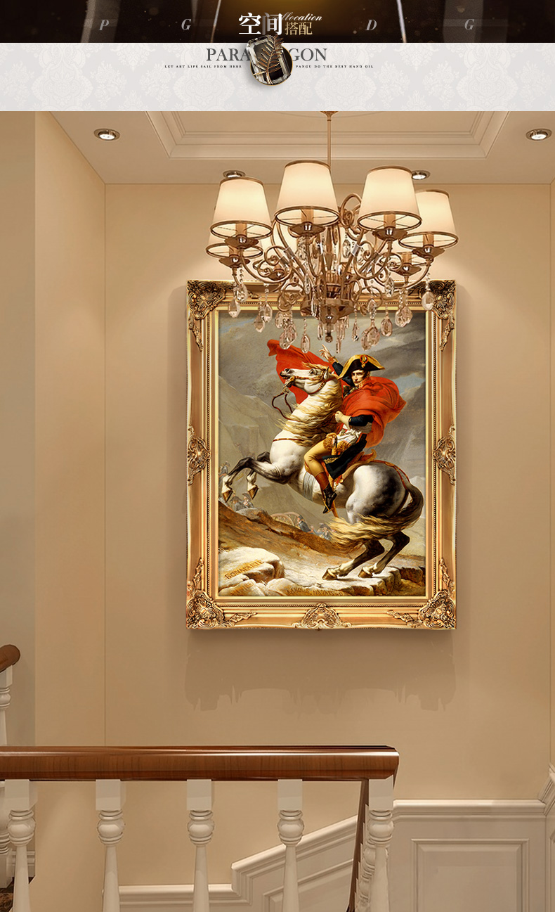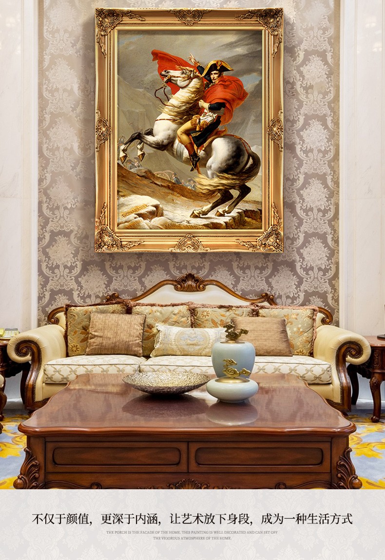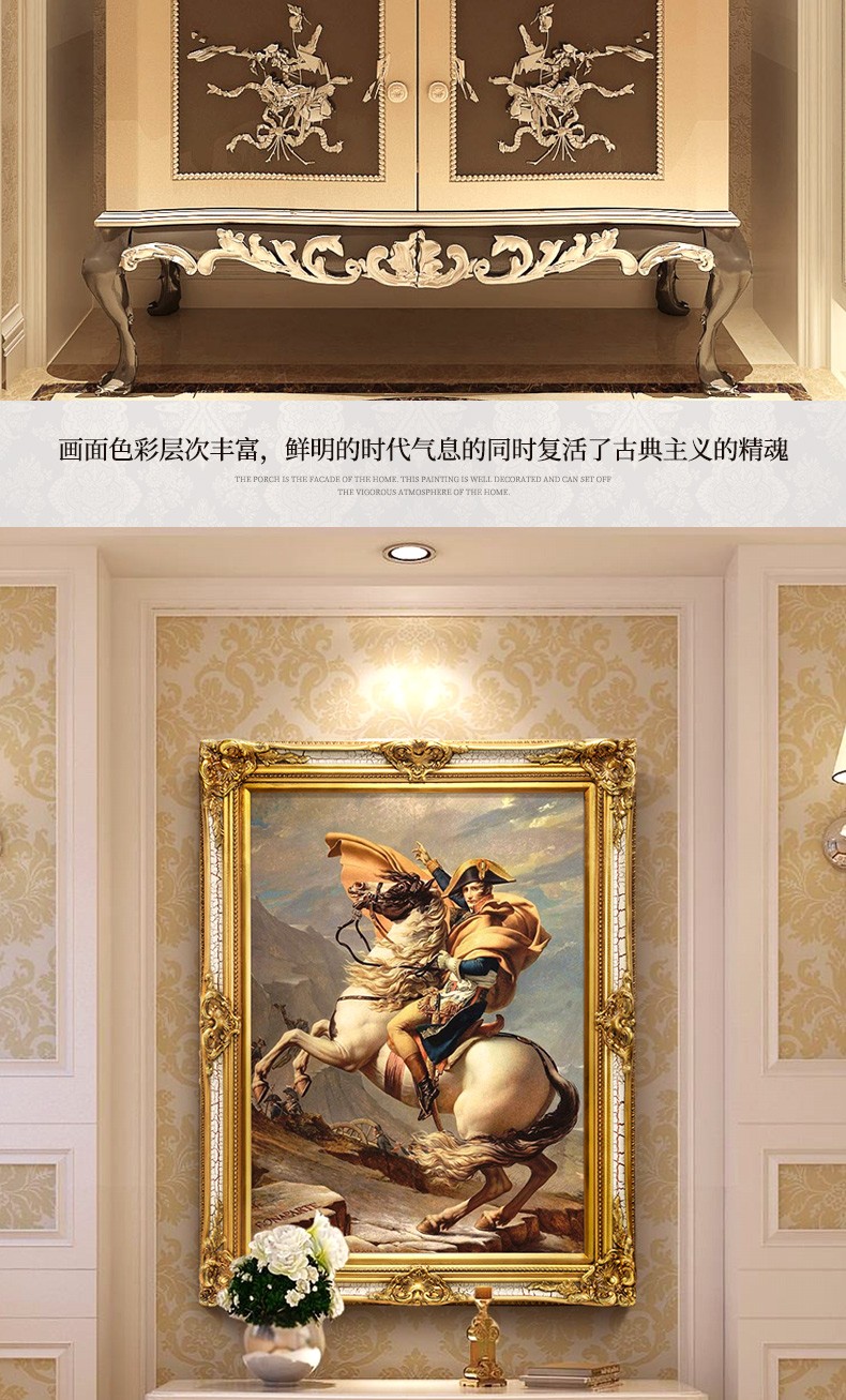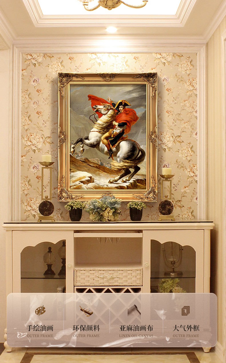 拿破仑手绘欧式人物肖像马定制客厅玄关油画别墅竖版走廊装饰挂画