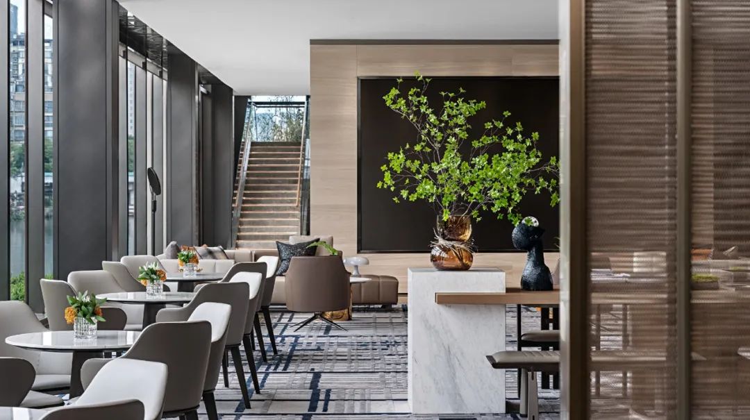 “汩汩而流的江河、蓊郁清凉的湿地生态、回响声声的打渔歌……温州的清雅与悠哉成为我们设计时想要营造的空间格调?;诙宰匀坏慕舛劣肴诤?,我们将水的意象融入当代语言中,营造都会与自然交融相生的生活意境,抒叙场域润泽身心、静谧怡人的美学?!敝谀郎杓拼词既伺讼屯ο壬绱粟故?。